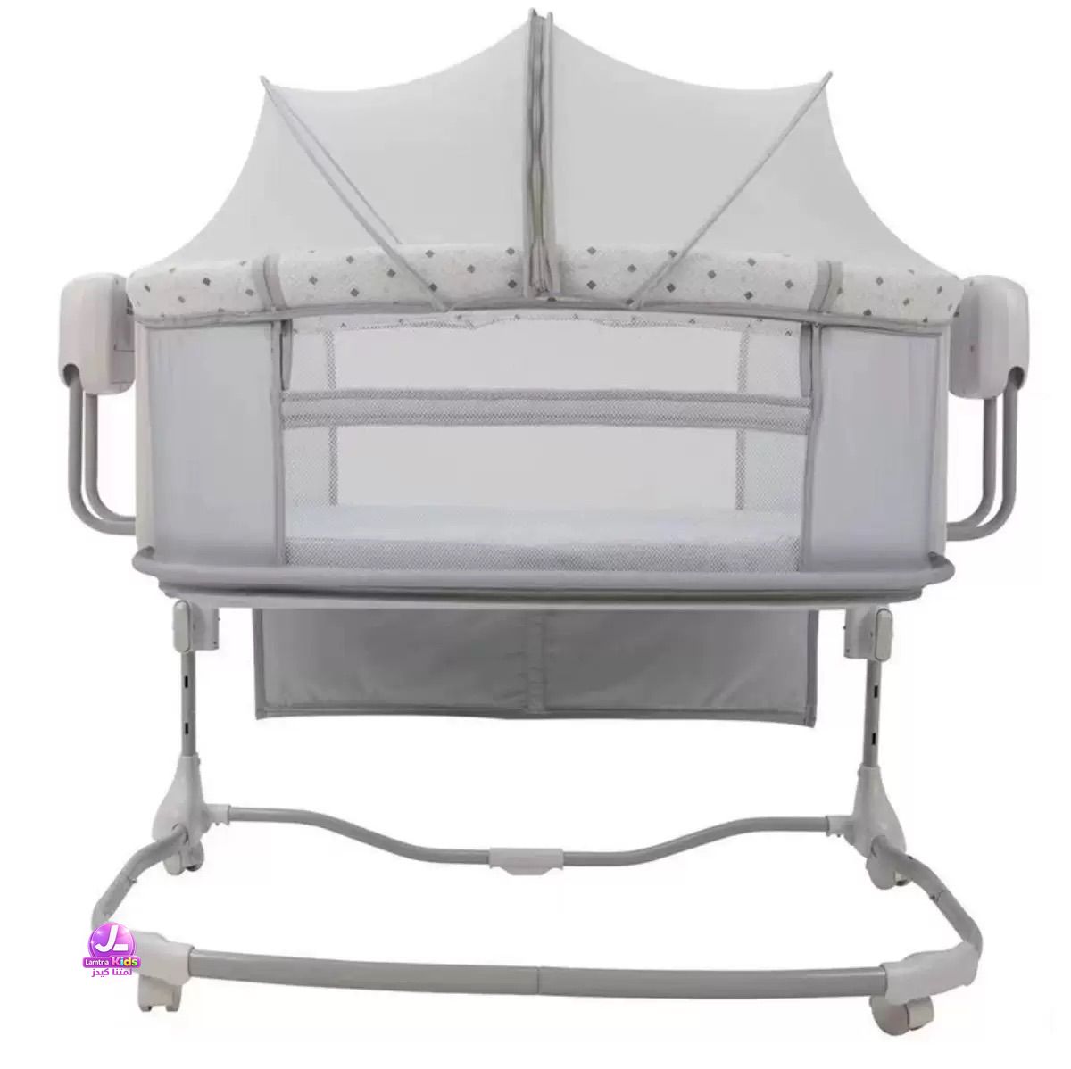 سرير اطفال من ماركة ماستيلا هزاز كهربائي يحتوي على ناموسية اكثر من مستوى ارتفاع تصميم حديث مناسب للطفل والام