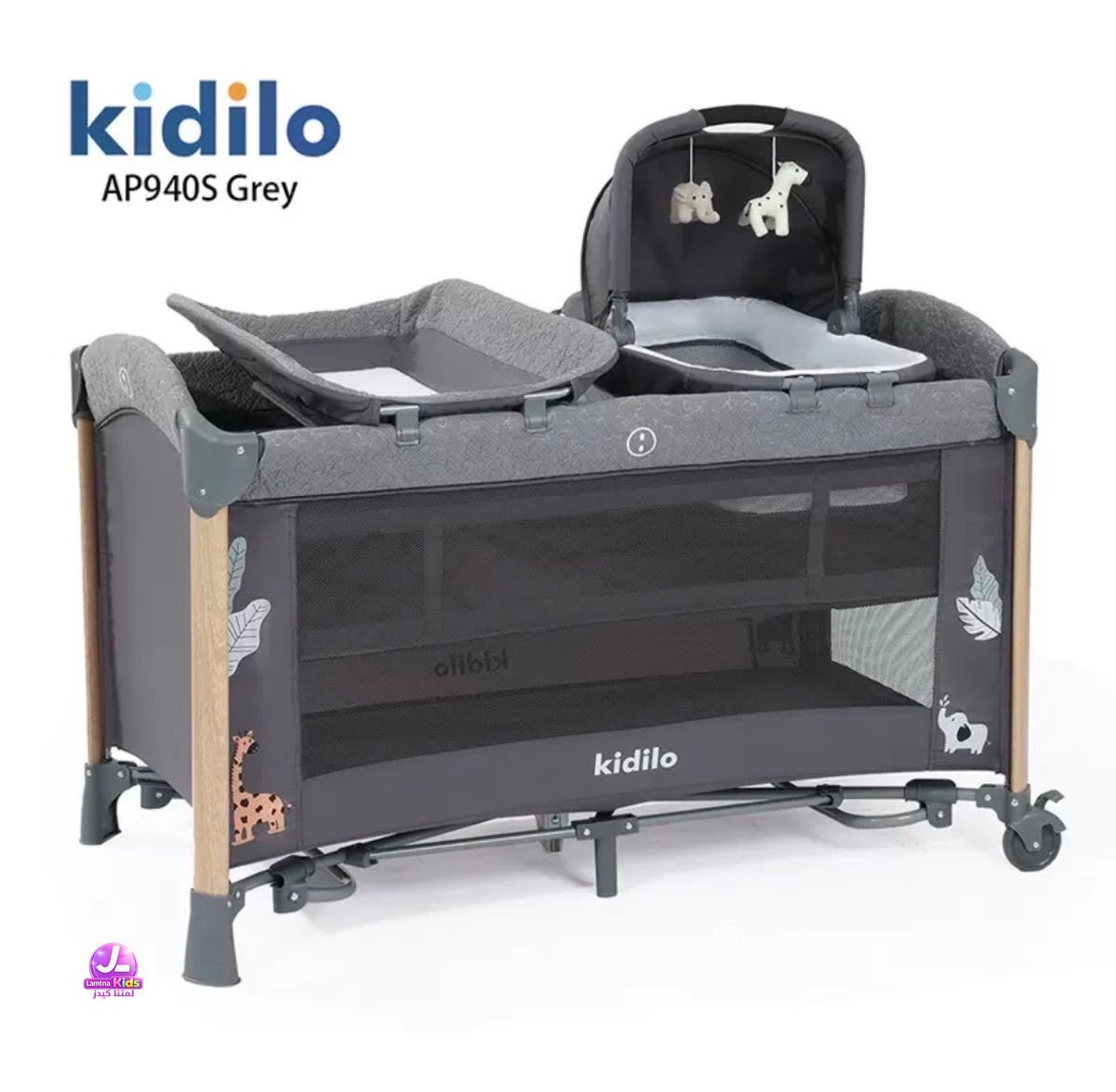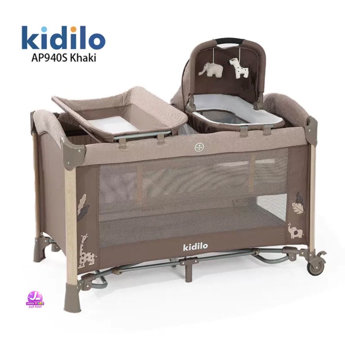 سرير اطفال من ماركة كيديلو AP940S هزاز يدوي يفتح بجانب الام سهل الطي والخزن يحتوي على مقعد تغير الملابس يحتوي على كريكوت منفصل يوضع بجانب الام